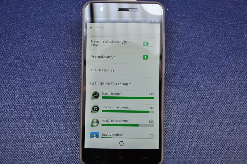Baterija ima oko 3000mAh i vjerojatno je tu negdje. Kako vidite po slikama ispod, drži super. Tu ima dosta navigacije na suncu, znači maksimalno osvjetljenje. Punjenje traje sa 10%-100% oko 2h45min, što je ok za ovaj kapacitet.